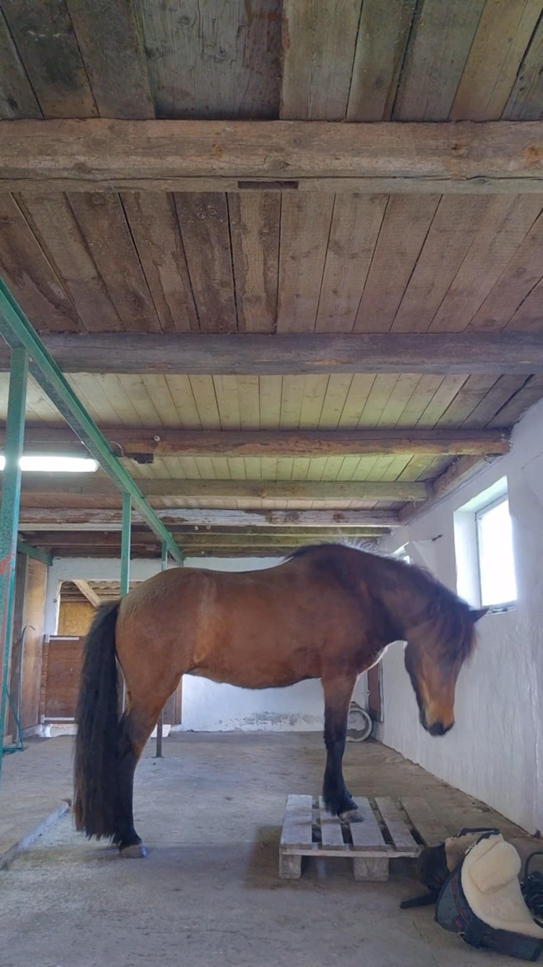 En hest i tilridning, træning eller adfærdsbehandling hos mig vil opleve løsdrift, stor vandrefold og stor græsfold.